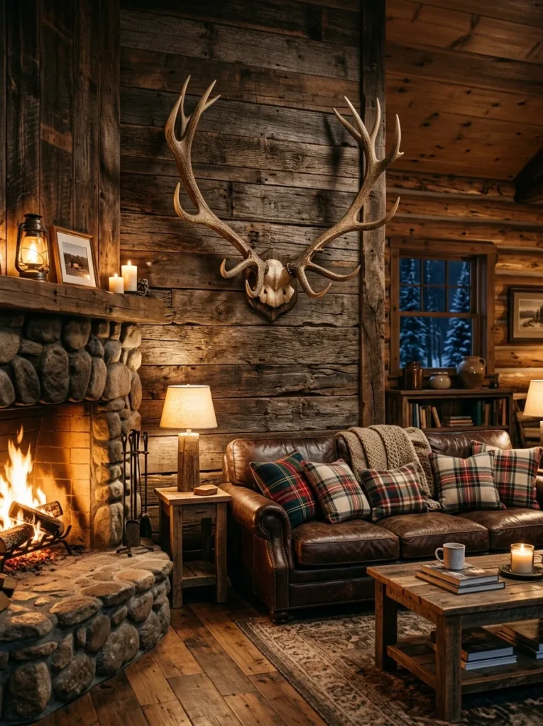 A single large mount centered above the sofa or fireplace becomes an instant focal point with serious architectural presence. Pair it with a reclaimed wood shelf beneath it, or flank it with small vintage lantern sconces for a layered, lodge-worthy look. The asymmetry of natural antler forms adds organic movement to the wall in a way that perfectly symmetrical art simply cannot. Rustic decor rewards the imperfect and the irregular — lean into it.
