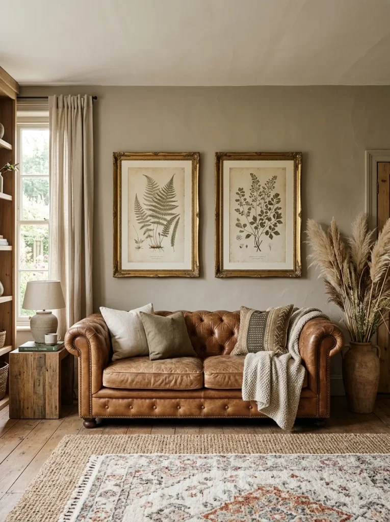 The final piece of a well-decorated rustic living room wall is often the simplest: large-scale nature art. Botanical illustrations, wildlife prints, topographical maps, forest photography, and vintage seed catalog art all speak the visual language of the outdoors — which is precisely what rustic style is trying to channel, even indoors.