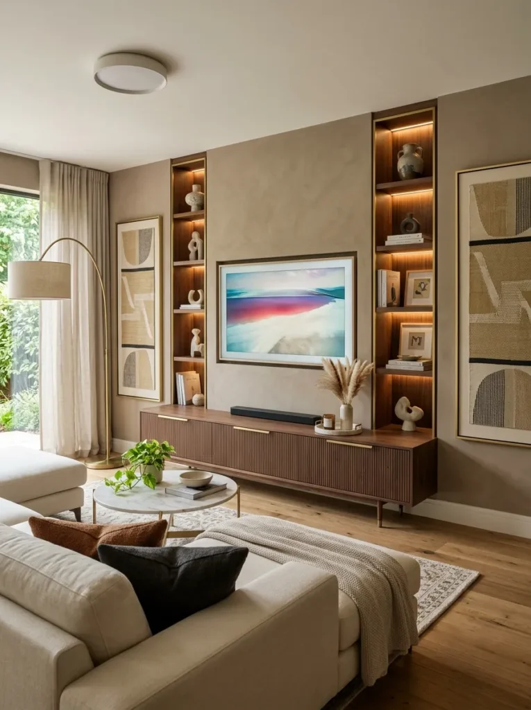 The best living room wall decor ideas with TV don’t hide the screen — they make it feel like it belongs. Let’s jump into eight approaches that actually pull this off.