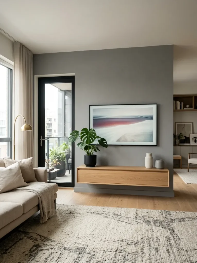 The real problem isn’t the TV itself — it’s the wall treatment (or lack thereof) surrounding it. A mounted screen on a bare white wall looks like a display model in a big-box electronics store. But that same screen, framed by intentional decor, integrated into a thoughtful media wall, or anchored by carefully chosen art and lighting? Suddenly it looks like a design decision. A confident one.