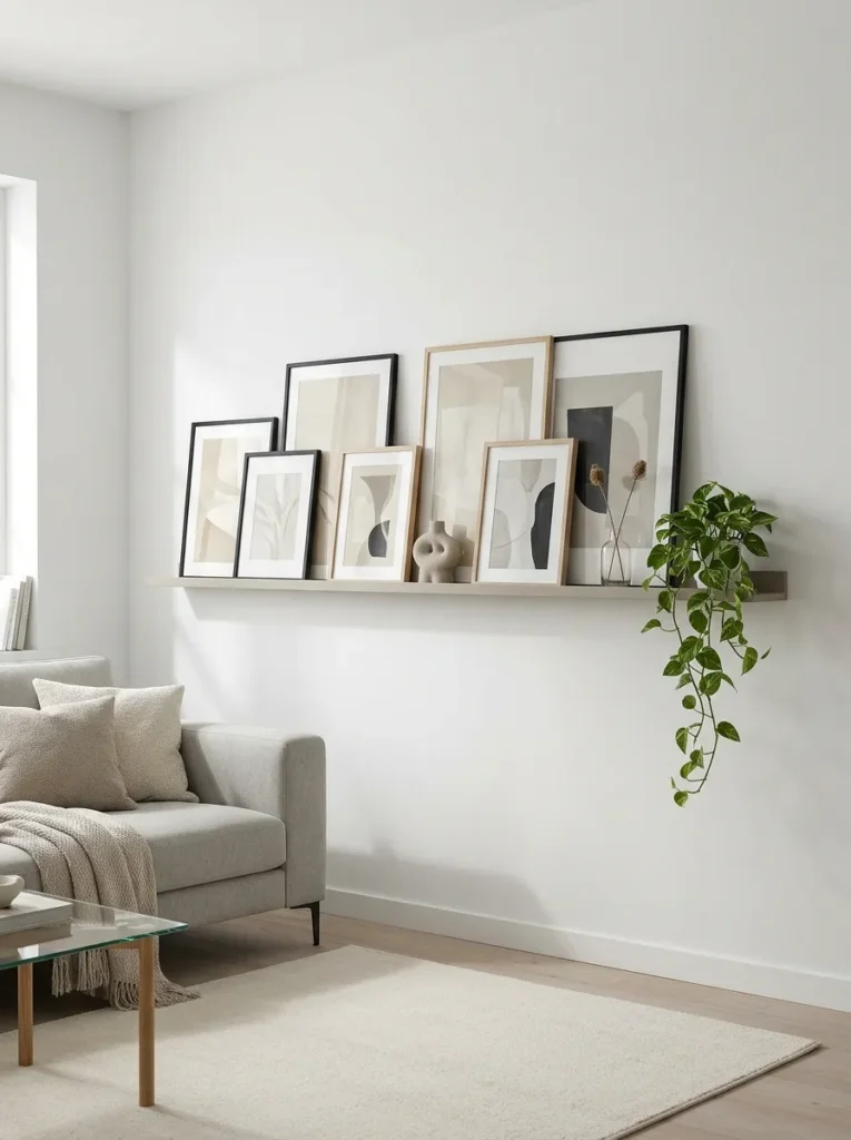 9. Layer a Curated Ledge Shelf With Rotating Art